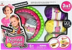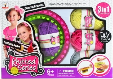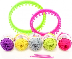 - Kompletny zestaw – 5 motków włóczki, 2 krosna, szydełko i szczegółowa instrukcja.