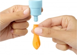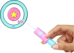 - Ściskane baloniki do włosów: daj laleczce napić się z buteleczki i obserwuj, jak baloniki z brokatem się napełniają.
