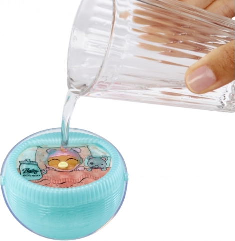 Każda kula L.O.L. SURPRISE! skrywa niemowlaczki, które „twardo śpią” w łóżeczku. Wystarczy wlać odrobinę wody, a łóżeczko magicznie się rozpuści – od razu zobaczysz, ilu przyjaciół ukryło się w środku. Możesz znaleźć bliźniaki, trojaczki lub nawet zestaw ze zwierzaczkiem. Następnie delikatnie przetrzyj niemowlaczkom oczy wodą, aby odkryć ich tajemniczy kolor oczu.