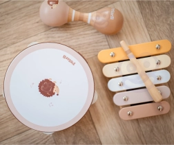 Ten stylowy dziecięcy zestaw łączy bezpieczne drewniane wykonanie z harmonijnym designem POLARB z motywem jeża. Dzieci mogą odkrywać rytm na tamburynie, grać proste melodie na ksylofonie i ćwiczyć koordynację za pomocą marakasów. Idealny do pierwszego kontaktu z muzyką w domu i w przedszkolu.