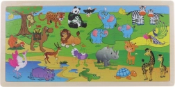Odkryj zabawne i edukacyjne drewniane puzzle z motywem safari składające się z 96 elementów, które rozwijają małą motorykę, logiczne myślenie oraz cierpliwość dzieci. Duży format o wymiarach 44,5 × 22,5 cm jest idealny dla dzieci od 3 lat.
