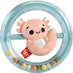 Wiążący się aksolotl w przejrzystym kółku z grzechoczącymi koralikami dla wizualnej i słuchowej stymulacji.