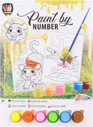 Zabawne malowanie według numerów. Zestaw zawiera 2 obrazki, zestaw 6 farb i pędzelek. Wymiary opakowania ok. 22,5 × 31 × 2 cm. Wiek 5+