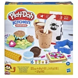 Z Play-Doh Kuchenne Kreacje – Bar Mleczny dzieci mogą dzięki różnorodnym narzędziom i kolorom modeliny tworzyć realistycznie wyglądające mleko i ciasteczka. Zestaw zawiera: