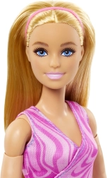 Lalka ma długie blond włosy i nosi różowy sportowy top oraz niebieskie legginsy z motywem tie-dye, które świetnie pasują do dynamicznego stylu zabawy. Jest idealna dla kolekcjonerów oraz dla dzieci od 3 lat, które chcą odkrywać świat, rozwijać elastyczność i tworzyć własne historie.