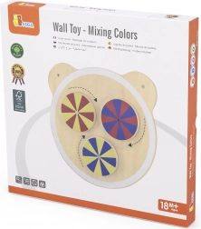 Trzy łatwo obracające się kółka w podstawowych barwach tworzą podczas kręcenia przyciągające wzory. Dzieci uczą się rozpoznawać kolory oraz postrzegać ruch i rytm w formie zabawy.