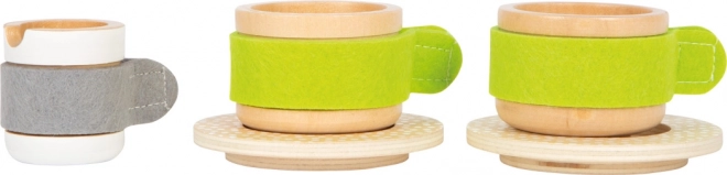 Odkryj radość z przygotowywania herbaty i kawy z naszym zestawem do zabawy. Ten pięknie wykonany drewniany zestaw oferuje wiele detali pobudzających wyobraźnię. W komplecie znajdują się dwie filiżanki z podstawkami, dwie łyżeczki, cukiernica, dzbanuszek na mleko oraz duży dzbanek na kawę lub herbatę ze zdejmowanymi pokrywkami, które dodają realizmu zabawie.