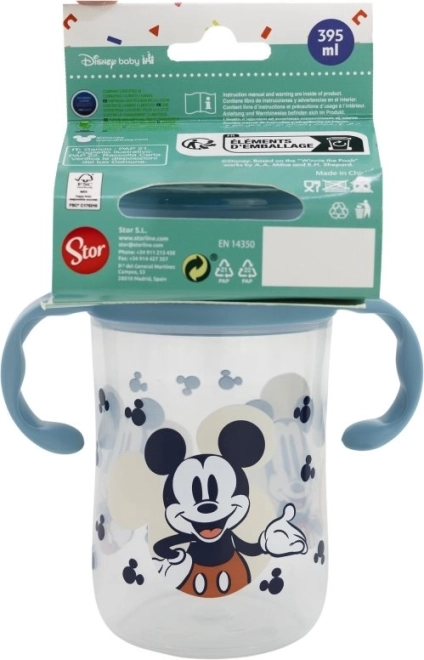 Kubek ozdobiony jest motywem Myszki Mickey, co dodaje atrakcyjnego wyglądu dla dzieci.