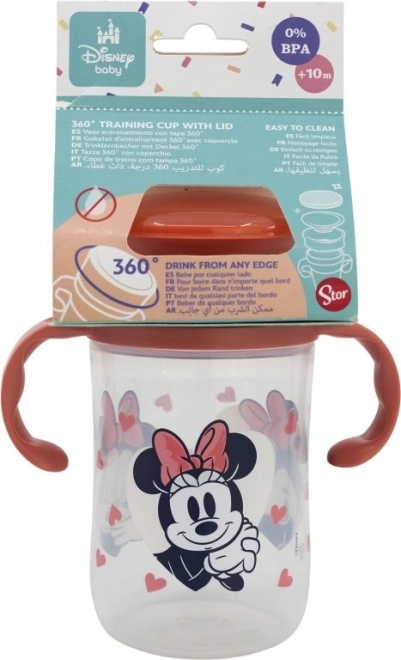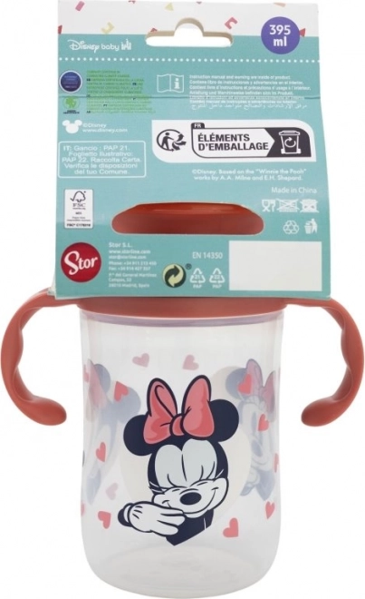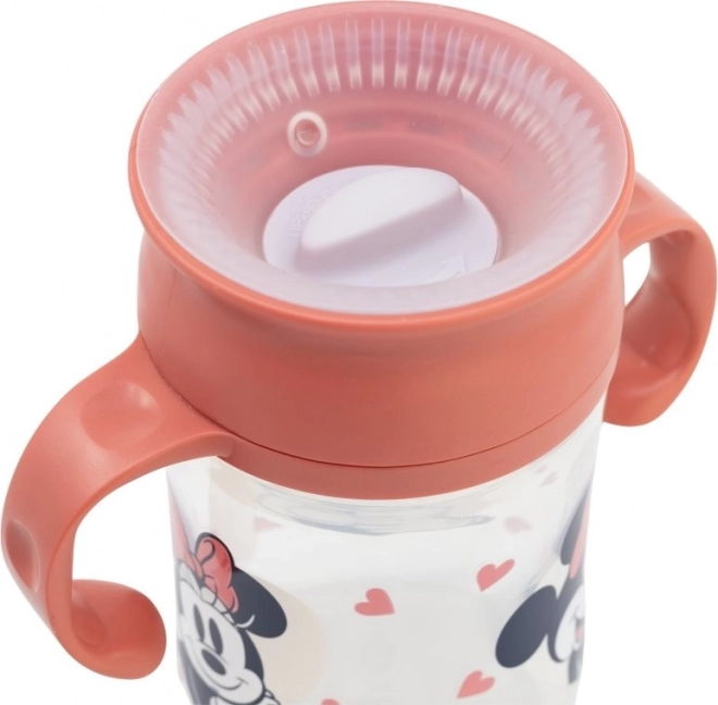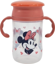 Kubek treningowy ma praktyczny design, który pozwala dzieciom pić poprzez lekkie dociśnięcie ust niezależnie od położenia kubka. Dzięki ergonomicznemu uchwytowi łatwo trzyma się nawet w małych dłoniach. Zabawny motyw z Minnie Mouse dodaje radości codziennemu piciu i zapewnia bezpieczne doświadczenie bez BPA dla Twojego dziecka.