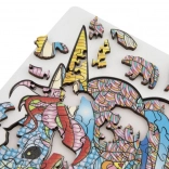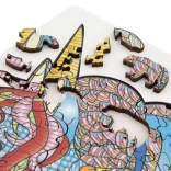 Drewniane puzzle unikalnego stylu z 137 częściami, zaprojektowane w kształcie kolorowego jednorożca. Idealne do zabawy i relaksu dla dzieci i dorosłych.