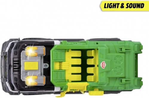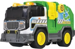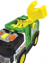 Zielona ciężarówka recyklingowa jest wyposażona w funkcję światła i dźwięku, które zwiększają frajdę i uczą dzieci znaczenia recyklingu.