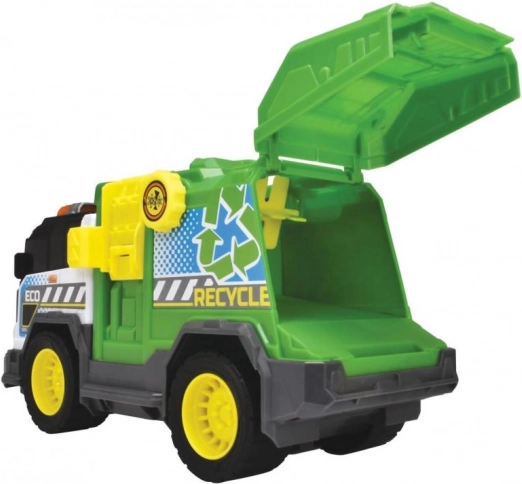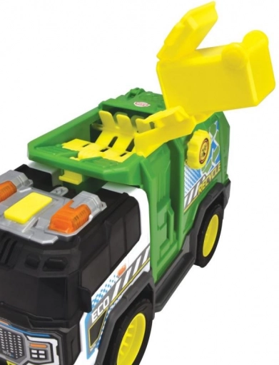 Dzięki ręcznie sterowanemu opróżnianiu kosza oraz otwieranej tylnej klapie realistyczny proces recyklingu jest oddany z dbałością o szczegóły. Ta zabawka bez napędu została zaprojektowana z myślą o bezpieczeństwie dzieci i jest polecana dla maluchów od trzeciego roku życia. Baterie są częścią zestawu.