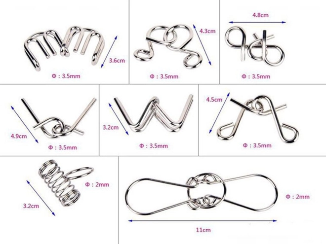- 8 unikalnych metalowych łamigłówek w jednym opakowaniu