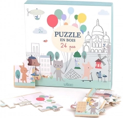 Vilac panoramiczne drewniane puzzle Paryż – Sarah Betz, 24 elementy