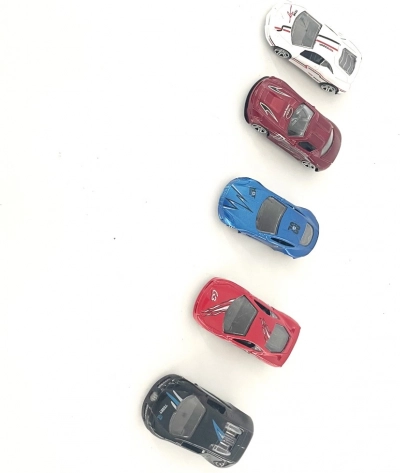- 5 unikalnych samochodzików dla urozmaiconej zabawy i kolekcjonowania.