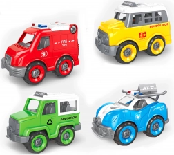 Zabawne i edukacyjne auto do skręcania dla dzieci, które oferuje możliwość rozwijania małej motoryki. Dostępne w 4 różnych wariantach – straż pożarna, policja, autobus i sprzątanie.