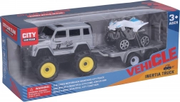 Auto terenowe z quadem 25 cm to doskonały wybór dla każdego miłośnika aut i przygód. Ten model zapewnia świetną zabawę dzięki napędowi na sprężynę (napęd cierny) oraz wolnym kołom quada, co umożliwia łatwą i przyjemną zabawę.