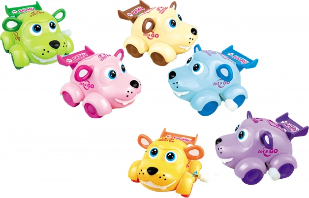 Uroczy nakręcany piesek z plastiku o wielkości 8 cm, idealna zabawka dla małych dzieci. Wystarczy go nakręcić i obserwować, jak się porusza.