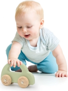 To minimalistyczne drewniane autko w delikatnym zielonym kolorze to świetny wybór jako pierwsza zabawka rozwijająca ruch i koordynację. Dzięki ergonomicznemu kształtowi małe rączki łatwo je chwytają i pchają po podłodze, a ciche koła zapewniają płynny i niezakłócony ruch.