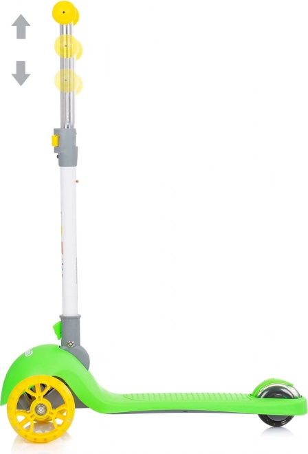 Zapewnij dzieciom radosną i bezpieczną jazdę z hulajnogą CHIPOLINO Funky w zielono‑żółtej kolorystyce. Lekka aluminiowa rama ułatwia prowadzenie, a szeroki antypoślizgowy podest i gumowe rączki gwarantują pewność podczas jazdy. Kolorowe diody LED w przednich i tylnych kołach zapalają się w ruchu i zwiększają widoczność.