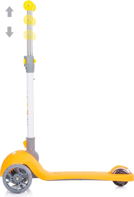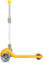 Hulajnoga Chipolino Funky Orange to świetny wybór na pierwsze przejażdżki dziecka. Dzięki lekkiej aluminiowej ramie łatwo się prowadzi, składana kierownica ułatwia transport i przechowywanie, a szeroki, antypoślizgowy podest zapewnia pewność przy odepchnięciach.