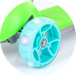 Przednie i tylne koło wyposażone są w kolorowe diody LED, które świecą podczas jazdy, zwiększając atrakcyjność i bezpieczeństwo.