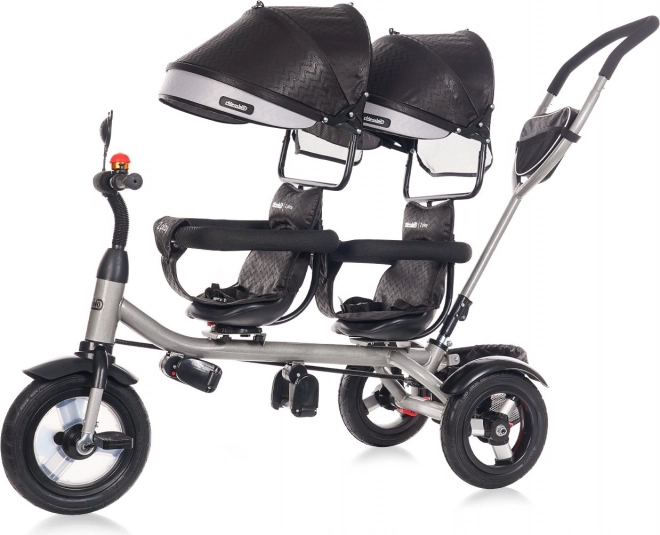 Praktyczny trójkołowy wózek dla bliźniąt Chipolino 2Play Obsidian oferuje wygodną i bezpieczną jazdę dla dwojga dzieci, każde do 25 kg. Dzięki obrotowemu siedzisku 360° i dwóm trybom ustawienia (w kierunku jazdy lub twarzami do siebie) łatwo dopasowuje się do codziennych spacerów. Duże gumowe koła, podwójne budki z osłonami przeciwsłonecznymi, pałąki i pasy zapewniają stabilność, komfort i bezpieczeństwo podczas każdej przejażdżki.