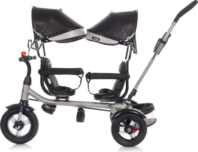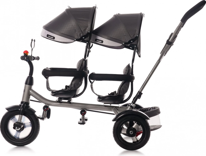 Ten solidny trójkołowiec dla dwojga dzieci łączy wszechstronność użytkowania z naciskiem na bezpieczeństwo i wygodę. Rodzice mogą prowadzić pojazd wygodnym uchwytem, lub dziecko z przodu może pedałować. Obrotowe przednie siedzisko 360° pozwala ustawić je w kierunku jazdy albo twarzą do rodzeństwa.