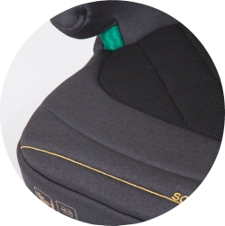 Montaż jest szybki i prosty – użyjesz ISOFIX + pasa bezpieczeństwa pojazdu albo tylko 3‑punktowego pasa. Przestronne siedzisko o ergonomicznym kształcie, z miękką tapicerką i podłokietnikami gwarantuje wygodę także w dłuższych trasach. Pokrowiec można łatwo zdjąć i wyprać, co ułatwia utrzymanie siedziska w czystości.