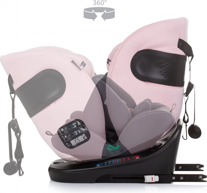 Uniwersalny fotelik samochodowy dla dzieci o wzroście 40–150 cm z ISOFIX, Top Tether i obrotową bazą 360° dla łatwego sadzania dziecka. Oferuje jazdę tyłem i przodem do kierunku, 5‑punktowe pasy, ochronę przed uderzeniem bocznym oraz wygodne wyściełanie, w tym wkładkę 3D. Zatwierdzony zgodnie z R129 i-Size dla bezpiecznej podróży od urodzenia do ok. 12 lat.
