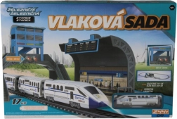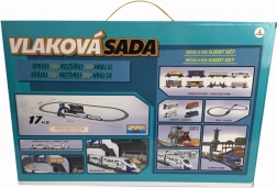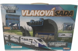 - 1× lokomotywa z efektem świetlnym, 1× wagon, 14× szyny, 1× stacja