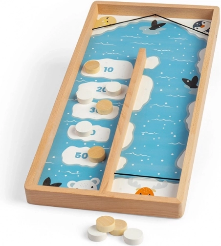 Wytrzymała drewniana rama i wysokiej jakości wykonanie zapewniają stabilność oraz długą żywotność. Zimowy motyw z polarnymi zwierzętami dodaje grze uroku i wciąga dzieci w rozgrywkę.