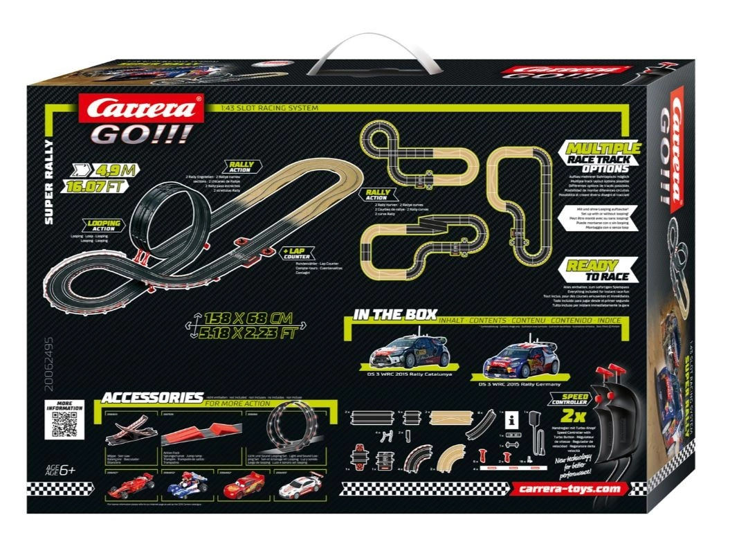Wejdź do świata prawdziwego ścigania z torem CARRERA GO!!! Super Rally. Połączenie szybkich prostych, wymagającej pętli i ostrych zakrętów gwarantuje intensywną zabawę i rywalizację dla dzieci i dorosłych. Idealny wybór dla wszystkich, którzy kochają dynamiczne wyścigi i chcą przesuwać własne granice.
