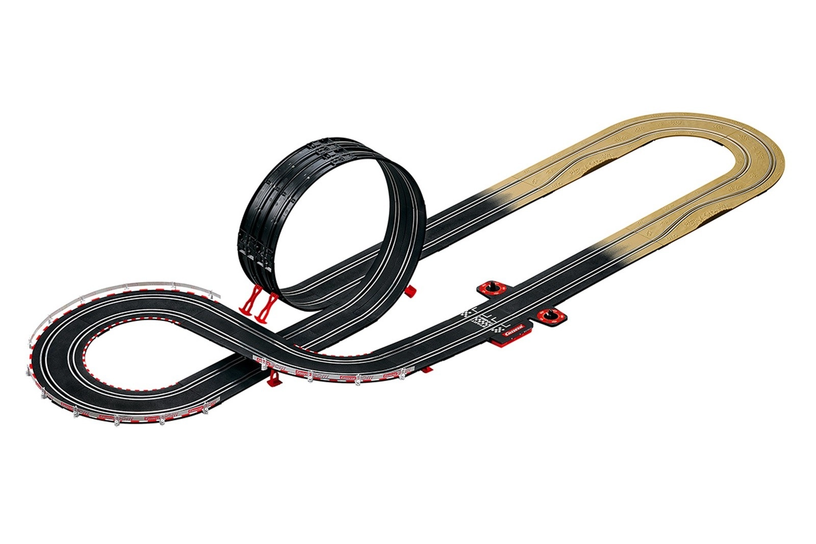 Tor o długości 4,9 metra oferuje zrównoważoną konfigurację dla maksymalnych emocji i płynnej jazdy. Przygotuj się na walkę o każdy centymetr trasy – precyzja, prędkość i timing decydują o zwycięstwie.
