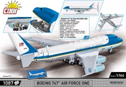 Zbuduj precyzyjną replikę BOEING 747 Air Force One z 1087 elementów. Po złożeniu model ma 46 cm długości i 42 cm rozpiętości skrzydeł – idealny do gabloty i do zabawy.