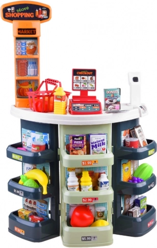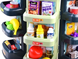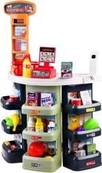 Dziecięcy sklep z ladą, półkami i kasą zamieni pokój w mały targ. Dzięki skanerowi, koszykowi i fałszywym pieniądzom dzieci wypróbują zakupy i sprzedaż jak w prawdziwym sklepie. Realistyczne akcesoria – od butelek i puszek po owoce i warzywa – sprawiają, że zabawa jest wciągająca.