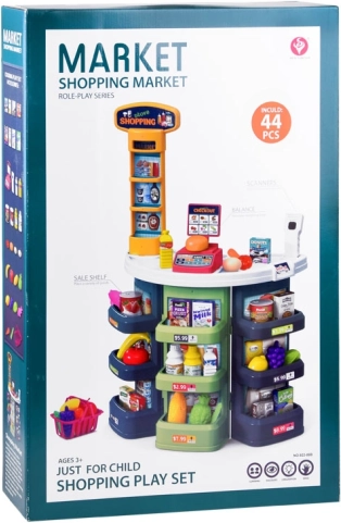 - Kompletne wyposażenie: 44 elementy – wszystko do zabawy w sprzedawcę i klienta.