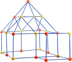 Ten uniwersalny zestaw konstrukcyjny z długimi niebieskimi prętami i pomarańczowo‑żółtymi łącznikami pozwala dzieciom tworzyć trwałe trójwymiarowe budowle. Sztywne, nieodkształcające się rurki oraz stabilne, wielokątne łączniki utrzymują kształt nawet przy większych konstrukcjach. W komplecie znajduje się także zeszyt z pomysłami na szybki start.