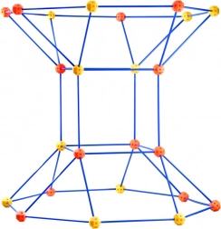 - Niebieskie pręty, żółte i pomarańczowe łączniki
