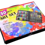 36 flamastów, 24 pastele olejne, 24 kredki woskowe, 24 kredki oraz 12 farb – wszystko do wyrazistych rysunków, cieniowania i malowania.