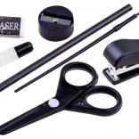 Linijka, temperówka, nożyczki, mini zszywacz, gąbka, ołówek, pędzel, gumka i klej w płynie usprawnią każdą kreatywną pracę.
