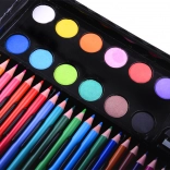 Ten rozbudowany kreatywny zestaw oferuje bogaty wybór przyborów do różnych technik – od delikatnego rysunku po intensywne kolorowanie i malowanie. Wszystko jest uporządkowane w wytrzymałym kuferku z zatrzaskowym zamknięciem i wygodnym uchwytem, dzięki czemu łatwo zabierzesz go wszędzie.