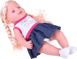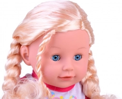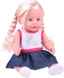 Ta czarująca lalka o wysokości około 40 cm jest wykonana z bezpiecznego, wysokiej jakości materiału i zachwyca realistycznymi detalami twarzy oraz delikatnym uśmiechem. Długie blond włosy zaplecione w warkoczyki zachęcają do czesania i stylizacji, a niebieskie oczy z mechanizmem zamykania dodają zabawie autentyczności.