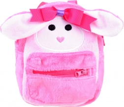 Plecaczek z uszkami i kokardką jest miękki w dotyku, ma kieszonkę na zamek i pomieści drobne akcesoria w podróży.
