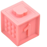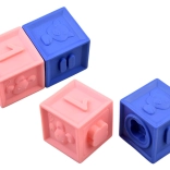 Kostki wykonane są z elastycznego, nietoksycznego materiału, który jest przyjemny w dotyku, bezpieczny do gryzienia i odpowiedni od 3. miesiąca życia.