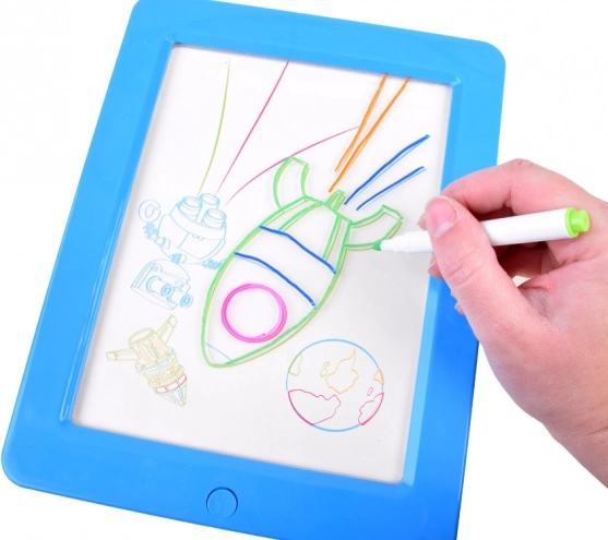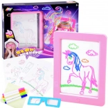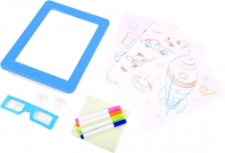Podświetlana tablica to świetne narzędzie do rozwoju wyobraźni, kreatywności i motoryki małej. Dzieci mogą tworzyć własne motywy lub łatwo odrysowywać wzory z dołączonych kart, a następnie umieszczać je w ramce z oświetleniem LED. Po założeniu okularów 3D ich prace zyskują przestrzenny efekt, który zachwyca.