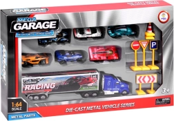 W skład zestawu wchodzi także duża ciężarówka z przyczepą, która dostarcza dodatkowej zabawy i rozszerza możliwości gry.