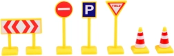 Zestaw zawiera również plastikowe znaki drogowe, które pomagają dzieciom uczyć się przepisów drogowych i jednocześnie rozwijają ich wyobraźnię.