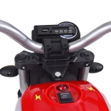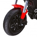 Motocykl dla dzieci został zaprojektowany z myślą o wygodnym i bezpiecznym sterowaniu. Szerokie koła, podnóżki i ergonomiczne siodełko wspierają pewność podczas jazdy i rozwój równowagi.