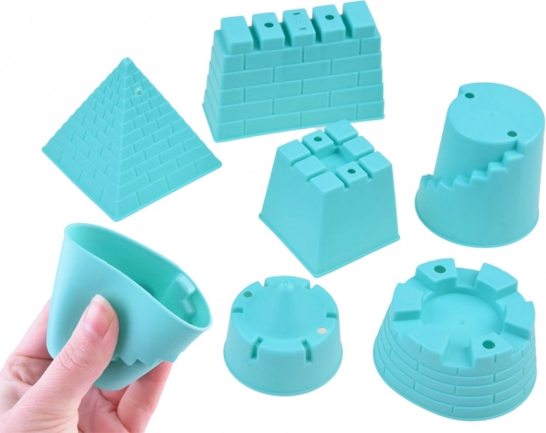 Zawiera różne kształty i narzędzia do tworzenia unikalnych piaskowych rzeźb i budowli.